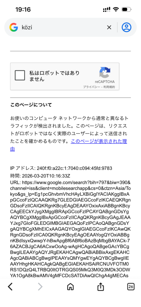 ずっとエラー。私はロボットじゃないって言ってるのにおかしい!Googleに文句いいたい。